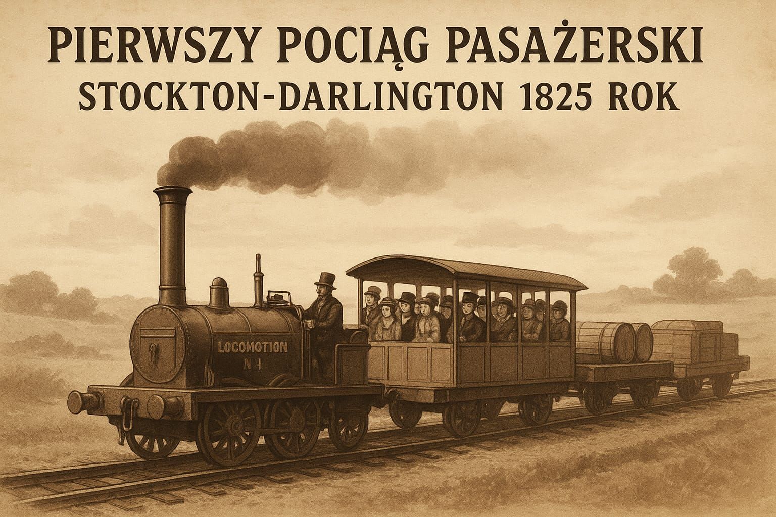 27 września 1825 roku na trasę między Stockton a Darlington w Anglii wyruszył pierwszy na świecie pociąg pasażerski. Pociąg ten został zaprojektowany przez słynnego inżyniera George’a Stephensona i był ciągnięty przez lokomotywę o nazwie Locomotion No. 1. Tego dnia rozpoczęła się nowa era w historii transportu.
