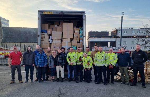 Wolontariusze i strażacy zapakowali w Newcastle 18 ton paczek z pomocą dla uchodźców z Ukrainy